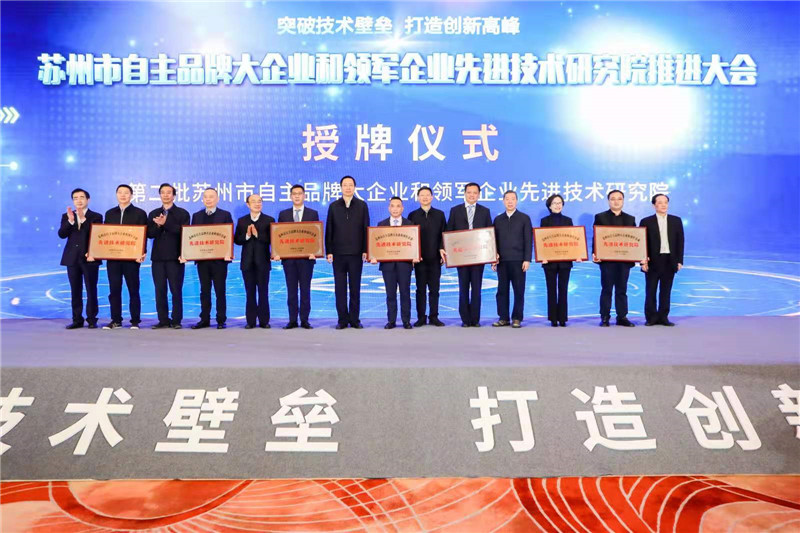 2019年12月21日,徐元生董事長(zhǎng)率隊(duì)參加了由蘇州市委、市政府組織召開(kāi)的第二批蘇州自主品牌大企業(yè)和領(lǐng)軍企業(yè)先進(jìn)技術(shù)研究院推進(jìn)大會(huì),并榮獲市政府授牌蘇州市大企業(yè)和領(lǐng)軍企業(yè)先進(jìn)技術(shù)研究院。
