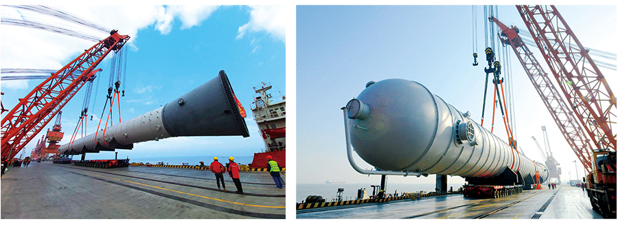 恒逸文萊石化項(xiàng)目是“一帶一路”的標(biāo)志性項(xiàng)目,公司同時(shí)參與了恒逸文萊石化一期、二期項(xiàng)目的核心關(guān)鍵設(shè)備,主要有抽余液塔、二甲苯塔、常壓塔、減壓塔等大型超限設(shè)備12臺(tái),總金屬重量近5000噸。