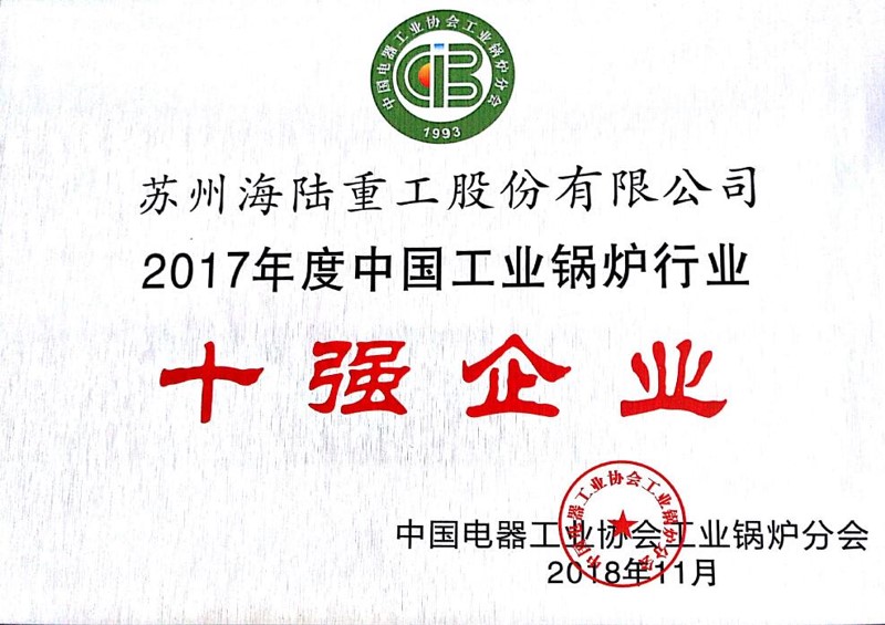 “2017年度中國工業(yè)鍋爐行業(yè)十強(qiáng)企業(yè)”