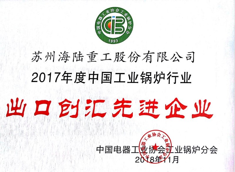 “2017年度中國工業(yè)鍋爐行業(yè)出口創(chuàng)匯先進(jìn)企業(yè)”