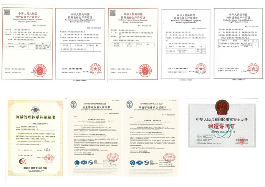 海陸制造與國(guó)際接軌,擁有資質(zhì)居同行首列。公司現(xiàn)持有A級(jí)鍋爐、A1、A2、A3級(jí)壓力容器制造、設(shè)計(jì)許可證,美國(guó)ASME"S、U"鋼印授權(quán)證書及中國(guó)CCS、英國(guó)LR、德國(guó)GL、挪威DNV、法國(guó)BV等國(guó)內(nèi)外船級(jí)社的工廠認(rèn)可證書。